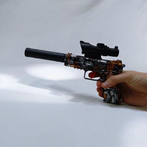 Іграшковий пістолет, стріляє орбізами. У комплект входять глушник та приціл, що додає реалістичності та азарту. Пістолет стріляє мʼякими гідрогелевими кульками (орбізами), які необхідно замочити у воді на 3-4 години до збільшення у розмірі. Безпечний, легкий та зручний для дитячих рук – відмінно підійде для ігор з друзями!