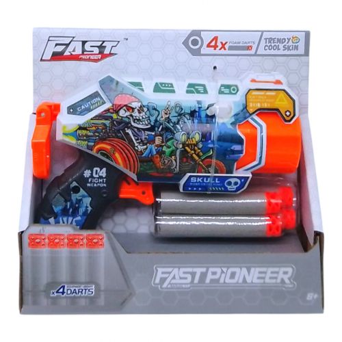 Бластер іграшковий, механічний, з барабаном – компактна та безпечна зброя для веселих ігор. Довжина — 15 см, у комплекті 4 мʼякі набої. Зручний барабан дозволяє швидко перезаряджати, а механічний запуск не потребує батарейок. Відмінний вибір для активних ігор вдома та на вулиці!