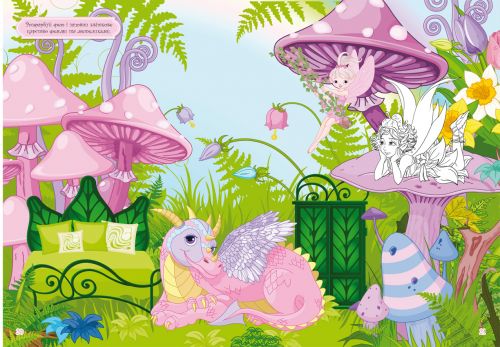 Яскрава книжечка-розмальовка з зображеннями замку з безліччю кімнат, фей, принцес, принців і різних сцен з життя принцеси і феечек. Зображення можна доповнювати за допомогою барвистих наклейок, які ви знайдете в книжечці. М’яка обкладинка. 24 сторінки. Мова: український.