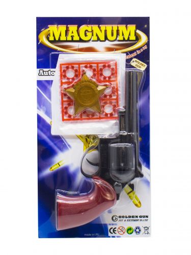 Пістолет “Магнум” з пістонами і зіркою шерифа. В одній упаковці 9 кілець по 8 набоїв в кожному.