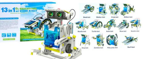 Робот-конструктор на сонячних батареях 13 в 1. Конструктор покаже дитині переваги сонячної енергії, і як вона надає руху ту чи іншу іграшку з даного набору. Набір дозволяє зібрати 13 різноманітних роботів. * Іграшка може не працювати в похмурий день, в тіні і без прямого сонячного світла.