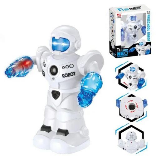 Робот інтерактивний “Neo Generation”. Самостійно їздить у різні боки. Оснащений характерними для робота звуковими ефектами, звуками пострілу, фразами англійською. З яскравим підсвічуванням. У робота рухливі руки. Працює від 3-х батарейок АА (немає в комплекті).