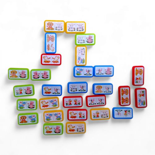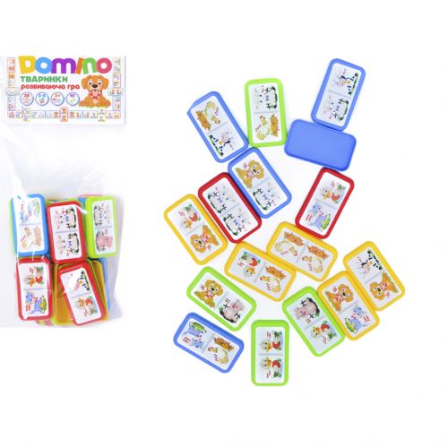 Дитяча гра “Доміно”. Правила гри стандартні: виграє той гравець, який першим позбавиться кісток. Інші гравці підраховують всі картинки на своїх кістках: одна картинка – 1 очко. Кістка, на якій малюнок повторюється – 4 очки. Програє той, хто має більше очок. У комплекті: 28 кістяшок, які виготовлені із легкого пластику. Розмір кісточки: 6х3 см.