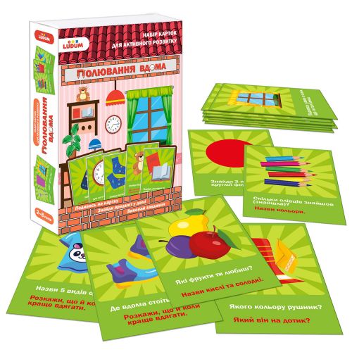 Грай вдома у себе та у друзів – так ще цікавіше! У наборі є 25 карток із цікавими завданнями. Дитина повинна витягнути картку і прочитати завдання. Далі потрібно знайти зображений на картці предмет, а потім відповісти на питання, написане у завданні. Гра розвиває уяву, увагу, мовлення та спостережливість.