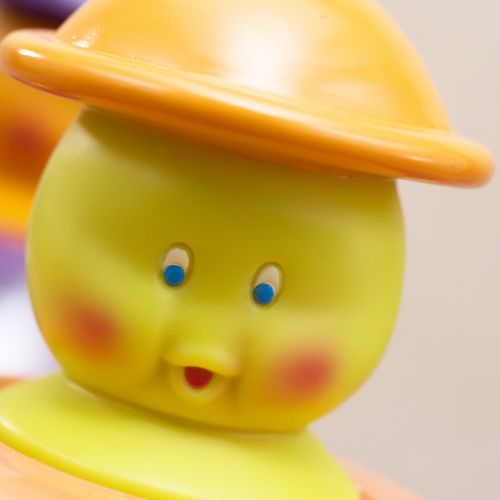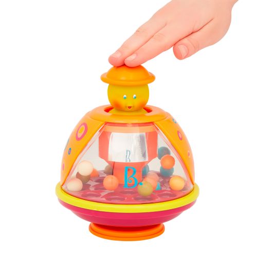 Натисніть на голову фігурки-дзиги – і кульки застрибають, немов живі! Іграшка схожа на дзигу, але для того, щоб кульки почали рухатись, не потрібно нічого заводити. Достатньо лише натиснути на капелюшок. Розвиває концентрацію уваги та сприяйняття простору дитини. Розмір – 18 х 15 х 15 см.