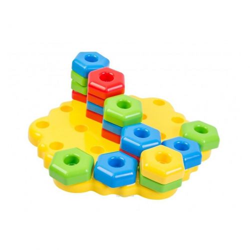 Ігро-Пазли, 20 елементів. Одягаючи елементи на основу, можна створювати цікаві конструкції: квіточки, тортики, сніжинки, башточки, літачки і багато іншого. Гра з Игро-Пазлами корисна для розвитку просторового мислення, інтелекту і уваги, моторики, координації і спритності рухів. Виготовлена з якісних матеріалів. Розмір фішки: 3.8 x 5.8 см. Діaмeтp ocнoви: 14 cм.