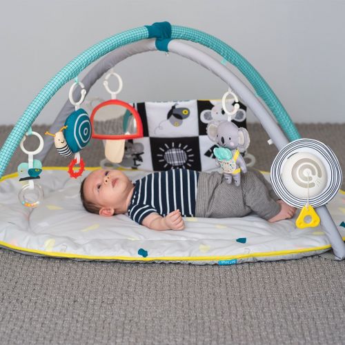 - М’який килимок оснащений унікальним двостороннім сенсорним центром 4-в-1, який стимулює малюка лежати в 4 різних положеннях, розвиваючи різноманітні навички в кожному з них. Розміщуйте малюка проактивно в різних положеннях – це дуже цінно для його рухового, когнітивного і сенсорного розвитку: