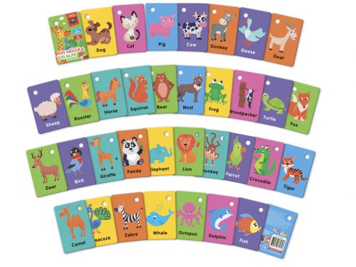 Вивчайте разом із малюком англійські слова та розглядайте яскраві ілюстрації до них. Виконуйте разом цікаві завдання. Набір складається з 18 двосторонніх карток на пластиковому кільці, яке можна прикріпити до ліжечка або коляски, або просто тримати в руці.