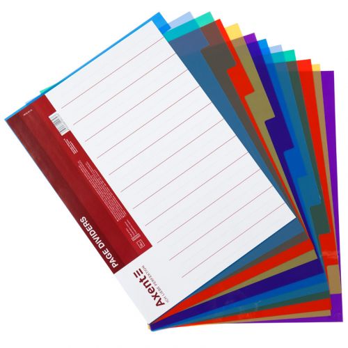 Розділювачі сторінок використовуються для оперативної систематизації документів у підшивці. Є популярним простим і зручним аксесуаром до папки-реєстратора. З їх допомогою легко розміщувати документи в папці по розділах і швидко знаходити необхідні папери. Розділювачі мають титульний лист опису, де є інформація про всі розділи. У наборі розділювачів 12 розділів у 6 кольорах. Зроблені з пластику, що допускає інтенсивне використання. Універсальна перфорація підходить для всіх папок-реєстраторів.