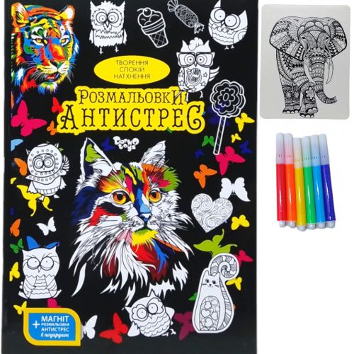 Комплектація: Розмальовка, 6 фломастерів, магніт