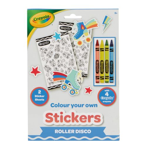 Комплектація: – Розмальовка зі сценами ролер-дискотеки; – Набір кольорових олівців Crayola; – Веселі наліпки для творчості.