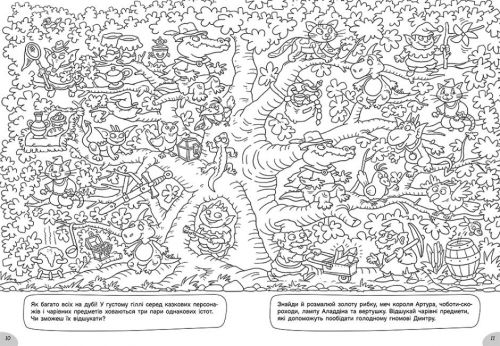 Ця книжка надовго захопить юного дослідника і шукача. Адже кожна сторінка – це цілий світ повний подій, героїв, пригод. Тут можна виконувати завдання, шукати загублених персонажів, проходити заплутані лабіринти і виявляти фантазію. Наповни цей дивовижній світ барвами!