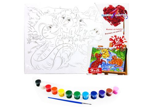 Розфарбування на полотні. Унікальний метод розфарбовування “контурних картин” фарбами. У наборі, крім полотна, на підрамнику є ще й паперовий, тренувальний контур. 12 фарб і пензлик в комплекті.