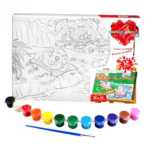 Розфарбування на полотні. Унікальний метод розфарбовування “контурних картин” фарбами. У наборі, крім полотна, на підрамнику є ще й паперовий, тренувальний контур. 12 фарб і пензлик в комплекті.