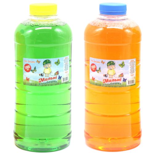 Мильні бульбашки розчин, 1000 мол. Без рамки. Пускання мильних бульбашок піднімає настрій, дарує море вражень і масу позитивних емоцій. Ціна за штуку (12 в коробці). Кольори розчину в асортименті.