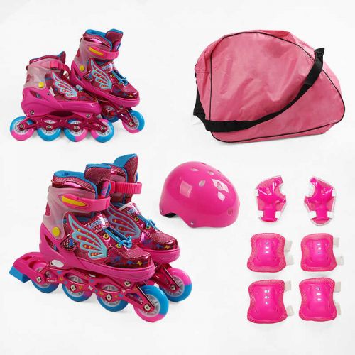 Комплектація: Ролики, переносна сумка, шлем, наколінники та налокітники