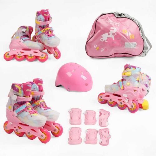 Комплектація: Ролики, переносна сумка, шлем, наколінники та налокітники