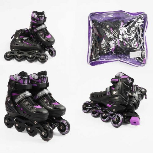 Ролики /розмір 34-38/ колір – Фіолетовий (6) колеса PU, ПЕРЕДНЄ КОЛЕСО СВІТЛО, d – 6.5 см, в сумці