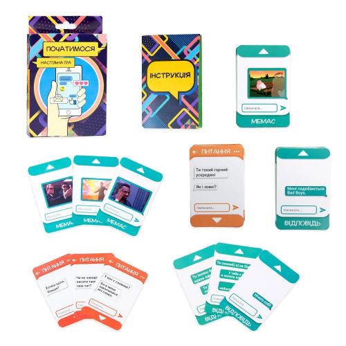 Комедійно-романтична гра, яка додасть яскравих кольорів у твій вечір з коханою людиною або друзями. Розігруючи діалоги ви зможете дізнатись одне про одного більше та підняти настрій. З цією грою ти зрозумієш, що твої підкати – це не найжахливіше, з чого можна розпочати діалог. В комплекті 55 карт та інструкція.