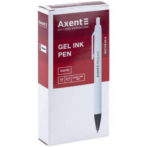 Ручка гелева автоматична Axent Rapid має класичний діловий дизайн і приємний на дотик прогумований корпус. Ручка оснащена гелевими чорнилами, що швидко висихають і не розмазуються при письмі. Гладке письмо, тонкий слід – пишучий вузол 0,5 мм. Довжина стержня 111 мм.
