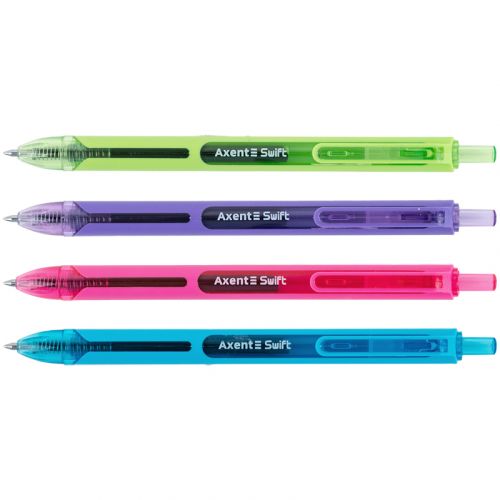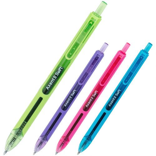 Ручка гелева автоматична Axent Swift має яскравий дизайн і приємний на дотик прогумований корпус. Ручка оснащена гелевими чорнилами, що швидко висихають і не розмазуються при письмі. Пишучий вузол 0,7 мм. Довжина стержня 111 мм.