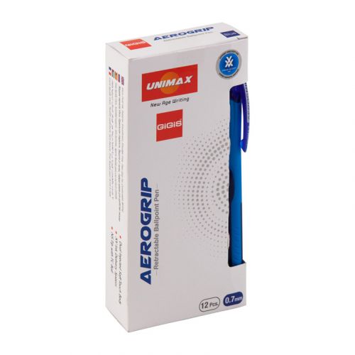 Ручка кулькова автоматична з непрозорим прогумованим пластиковим корпусом, напівпрозорими вставками і пластиковим кліпом. Чорнило підвищеної в’язкості забезпечує суперм’яке письмо. Колір корпусу відповідає кольору чорнила. Пишучий вузол 0,7 мм. Колір чорнила і корпуса: синій. Стержень UXB-137. Довжина стержня 107 мм.