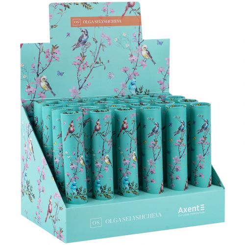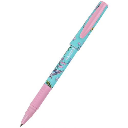 Ручка кулькова Axent у картонному пеналі, дизайн якого повторює дизайн ручки. Ручка має задрукований пластиковий корпус та ковпачок. Приємне на дотик, покриття SoftTouch, зручний прогумований грип. Пишучий вузол – 0,7 мм. Колір чорнила – синій. До ручки підходить стержень типу ASR1029.