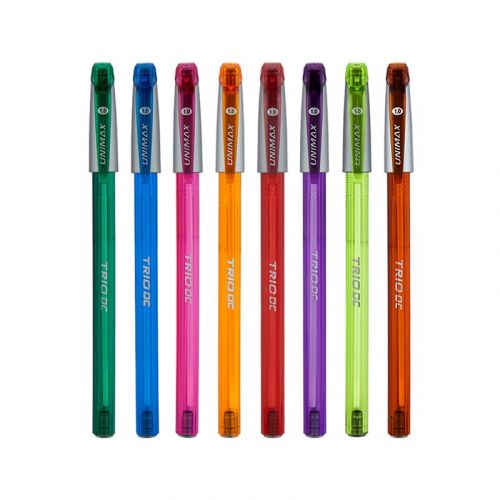 Кулькова ручка TRIO NEON DC – це натхнення, яке завжди під рукою. Преміальний пишучий вузол та інноваційне чорнило Visco Fluid Ink забезпечують суперм’яке письмо, дають яскраві й насичені лінії навіть при легкому ковзанні без зусиль. Масляне чорнило кулькової ручки TRIO NEON DC має підвищену в’язкість, завдяки чому накреслені лінії виходять акуратними, письмо – неймовірно гладким, а довжина письма – набагато більша у порівнянні зі звичайними масляними ручками. Тригранна форма корпусу і рельєфна зона захвату гарантують правильне положення пальців і відсутність напруження під час письма. Яскравий прозорий корпус та сірий вентильований ковпачок. Асорті кольорів корпусу. Пишучий вузол 1,0 мм, довжина письма 1500 м. Колір чорнила – синій.