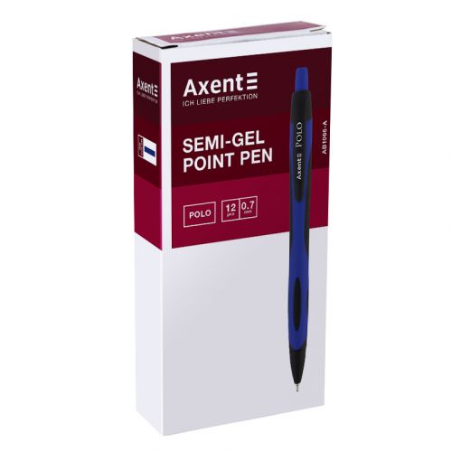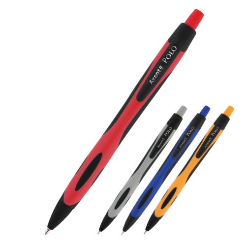 Ручки масляні поєднують переваги кулькових і гелевих ручок: 1) чорнило миттєво висихає, не розмазується, 2) помірна витрата чорнила, 3) м’яке письмо, не вимагає тиску на папір. Крім того, Ручки масляні здатні писати при низьких температурах, до-20С. Автоматична Ручка масляна Axent Polo має яскраві кольори корпусу. Корпус ручки виконаний з міцного пластику. Зручна область захоплення з прогумованими ділянками зменшує втомлюваність руки при письмі. Легке, гладке і акуратне письмо забезпечують високоточний швейцарський пишучий вузол і високоякісне чорнило. Пишучий вузол здійснює максимальне зчеплення з поверхнею паперу і однорідну та безперебійну подачу чорнила, а масляне чорнило плавно лягає, залишаючи рівну чітку лінію. Стержень має стандартну довжину 107 мм і тонкий пишучий вузол – 0.7 мм. Для заміни підходить стержень типу ASR1028-A. Довжина написання 800 м.
