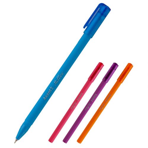 Ручки масляні поєднують переваги кулькових і гелевих ручок: 1) чорнило миттєво висихає, не розмазується, 2) помірна витрата чорнила, 3) м’яке письмо, не вимагає тиску на папір. Крім того, Ручки масляні здатні писати при низьких температурах, до-20С. Ручка масляна Axent Mellow має яскравий прогумований корпус, що приємний на дотик і запобігає ковзанню руки. Легке, гладке і акуратне письмо забезпечують високоточний швейцарський пишучий вузол і високоякісне чорнило. Пишучий вузол здійснює максимальне зчеплення з поверхнею паперу і однорідну та безперебійну подачу чорнила, а масляне чорнило плавно лягає, залишаючи рівну чітку лінію. Стержень має довжину 140 мм і тонкий пишучий вузол – 0,7 мм. Для заміни підходить стержень типу ASR1030-A. Довжина написання 1300 м.