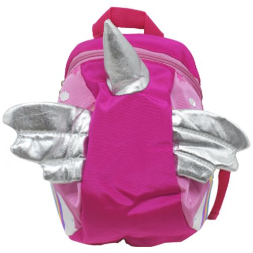 Чарівний дитячий рюкзачок невеликого розміру. Має лямки, довжина яких регулюється, та зручну петельку. Виріб з одним містким відділенням із роздільником посередині. Особливістю рюкзачка є декоративні елементи у вигляді мʼякого рогу та сріблястих крилець, як у чарівного єдинорога. Розмір: 22х28 см.