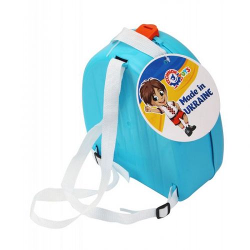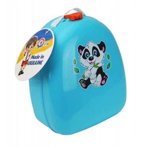 Дитячий рюкзак. Має дві регульовані по довжині ручки та петельку. Виконаний повністю із пластику, з милою картинкою-наклейкою на лицьовій стороні. Розмір 20х24х10 см.