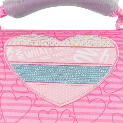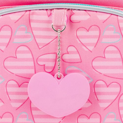 Рюкзак зовні: запатентована ортопедична спинка Ergo Kids; широкі S-подібні лямки; 1 відділення; 1 об’ємна передня кишеня; 2 бічні кишені; світловідбивні елементи; ручка з гумовою вставкою та текстильна петля; знімний нагрудний ремінь; ущільнене дно з захисним покриттям; зносостійкі блискавки; надійна фурнітура. Рюкзак всередині: роздільники з фіксуючою резинкою; кишеня для планшета; міцна підкладка. Декор: аплікація із комбінованих матеріалів, об’ємний гумовий брелок-підвіска у формі серця