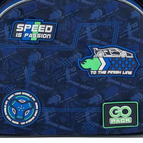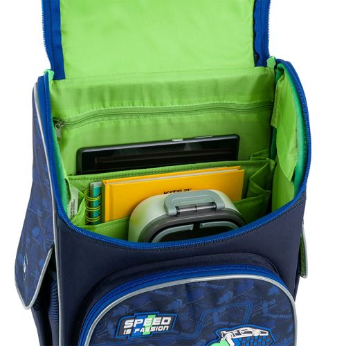 Рюкзак зовні: запатентована ортопедична спинка Ergo Kids; широкі S-подібні лямки; 1 відділення; 1 об’ємна передня кишеня; 2 бічні кишені; світловідбивні елементи; ручка з гумовою вставкою та текстильна петля; знімний нагрудний ремінь; ущільнене дно з захисним покриттям; зносостійкі блискавки; надійна фурнітура. Рюкзак всередині: роздільники з фіксуючою резинкою; кишеня для планшета; міцна підкладка. Декор: сублімаційний друк, об’ємний друк