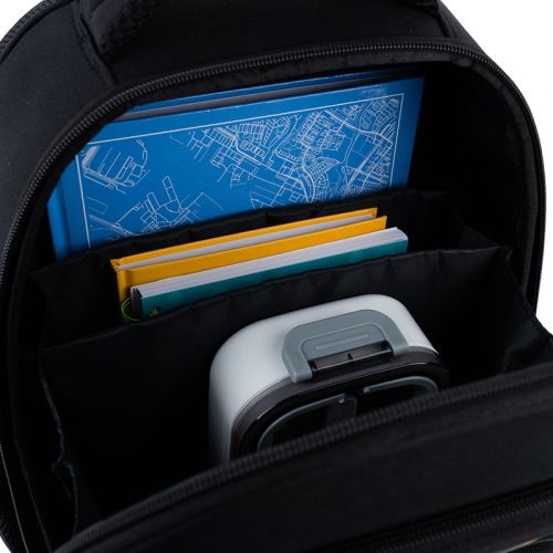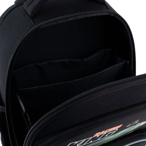 Рюкзак зовні: запатентована ортопедична спинка Ergo Kids; широкі S-подібні лямки; 2 відділення; 1 об’ємна передня кишеня; 2 бічні кишені; світловідбивні елементи; м’яка ущільнена ручка та текстильна петля; знімний нагрудний ремінь; ущільнене дно з захисним покриттям; зносостійкі блискавки; надійна фурнітура. Рюкзак всередині: роздільники; кишеня для планшета; міцна підкладка. Декор: світловідбивний друк, об’ємний друк