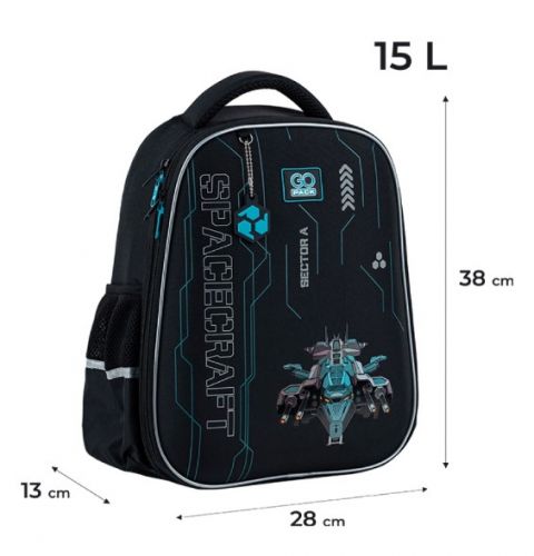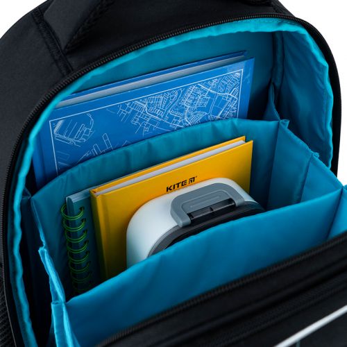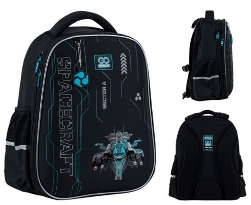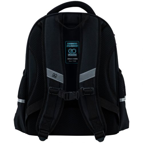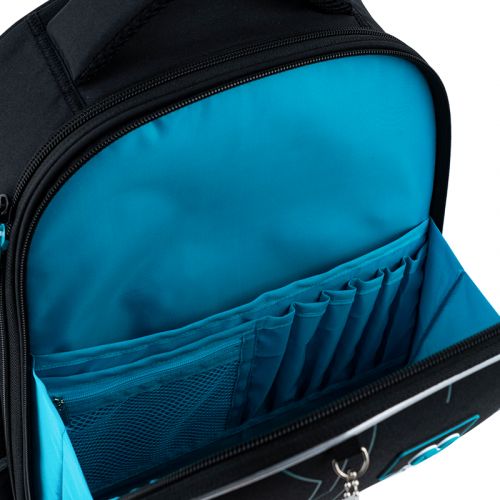 Рюкзак зовні: запатентована ортопедична спинка Ergo Kids; широкі S-подібні лямки; 2 відділення; 2 бічні кишені; світловідбивні елементи; мʼяка ущільнена ручка та текстильна петля; нагрудний ремінь; ущільнене дно з ніжками; зносостійкі блискавки, надійна фурнітура. Рюкзак всередині: роздільники; органайзер. Декор: обʼємний друк, сублімаційний друк, гумова підвіска
