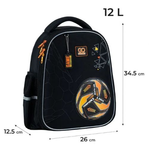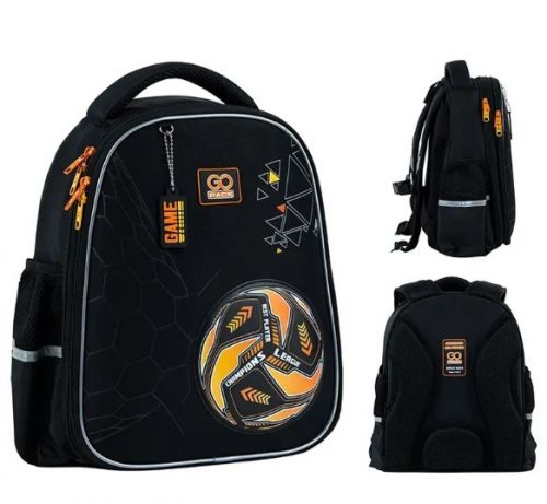 Рюкзак зовні: запатентована ортопедична спинка Ergo Kids; широкі S-подібні лямки; 2 відділення; 2 бічні кишені; світловідбивні елементи; мʼяка ущільнена ручка та текстильна петля; нагрудний ремінь; ущільнене дно з ніжками; зносостійкі блискавки, надійна фурнітура. Рюкзак всередині: роздільники; органайзер. Декор: обʼємний друк, світловідбивний друк, обʼємна нашивка, гумова підвіска