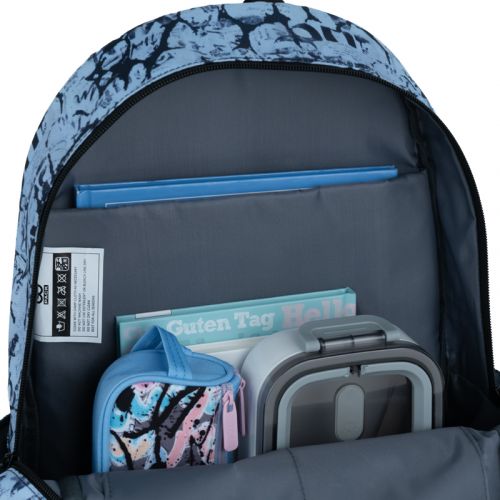 Рюкзак зовні: ущільнена спинка; 1 відділення; 1 передня кишеня; 2 бічні кишені; прихована кишеня на спинці; текстильна петля; ущільнене дно; світловідбивні елементи, зносостійкі блискавки, надійна фурнітура. Рюкзак всередині: 2 внутрішні кишені; відділення для ноутбука; кишеня для телефону Декор: сублімаційний друк