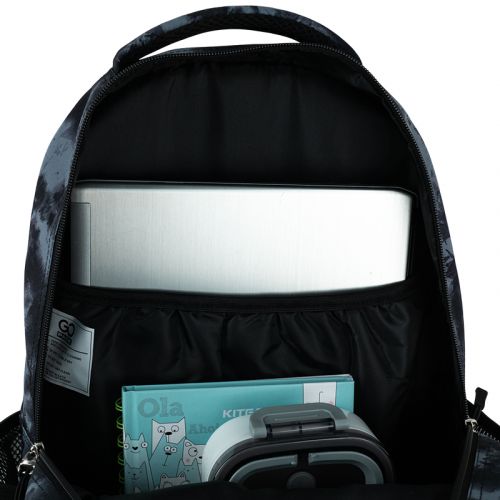 Рюкзак зовні: анатомічна спинка; широкі S-подібні лямки; 3 відділення; 1 об’ємна передня кишеня; 2 бічні кишені; світловідбивні елементи; м’яка ущільнена ручка та текстильна петля; знімний нагрудний ремінь; ущільнене дно; зносостійкі блискавки; надійна фурнітура. Рюкзак всередині: кишеня для ноутбука; органайзер, міцна підкладка. Декор: сублімаційний друк