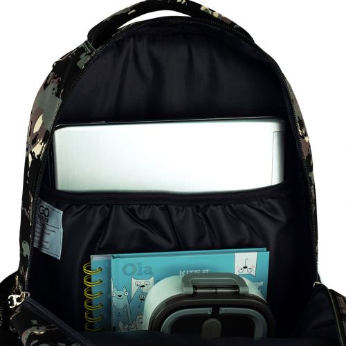 Рюкзак зовні: анатомічна спинка; широкі S-подібні лямки; 3 відділення; 1 об’ємна передня кишеня; 2 бічні кишені; світловідбивні елементи; м’яка ущільнена ручка та текстильна петля; знімний нагрудний ремінь; ущільнене дно; зносостійкі блискавки; надійна фурнітура. Рюкзак всередині: кишеня для ноутбука; органайзер, міцна підкладка. Декор: сублімаційний друк