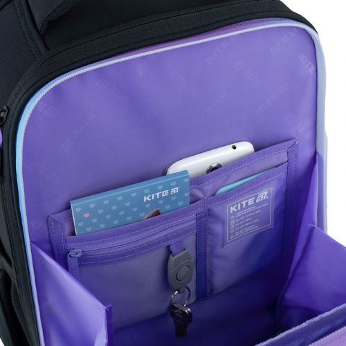 Рюкзак зовні: запатентована ортопедична спинка Ergo Kids; система регулювання спинки під зріст дитини; широкі S-подібні лямки; 2 відділення; 2 бічні кишені; світловідбивні елементи; м’яка ущільнена ручка та текстильна петля; знімний нагрудний ремінь; ущільнене дно з захисним покриттям та ніжками; зносостійкі блискавки, надійна фурнітура. Рюкзак всередині: роздільники; кишеня для телефона з плюшевою підкладкою; внутрішня кишеня на резинці; органайзер; знімна ключниця; брендована підкладка; поле для персональних даних. Декор: об’ємний друк, м’яка нашивка з липучки, гумові бейджі на липучці, брелок-підвіска з комбінованих матеріалів.