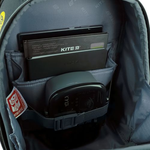 Рюкзак зовні: запатентована ортопедична спинка Ergo Kids; широкі S-подібні лямки; 2 відділення; 2 бічні кишені; світловідбивні елементи; м’яка ущільнена ручка та текстильна петля; знімний нагрудний ремінь; ущільнене дно з захисним покриттям та ніжками; зносостійкі блискавки, надійна фурнітура; Рюкзак всередині: роздільники з фіксуючою резинкою; кишеня для телефона з плюшевою підкладкою; органайзер; знімна ключниця, поле для персональних даних; Декор: об’ємний друк, світловідбивний друк, брелок-підвіска з комбінованих матеріалів