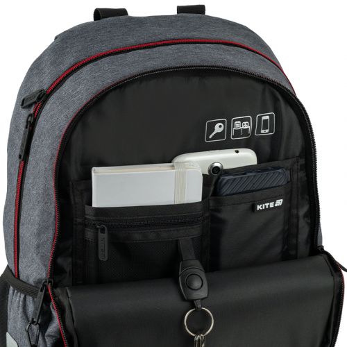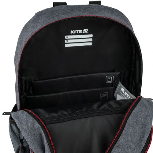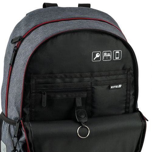 Рюкзак зовні: запатентована ортопедична спинка Ergo Kids; широкі S-подібні лямки; 2 відділення; 1 об’ємна передня кишеня; 2 бічні кишені; світловідбивні елементи; ручка з гумовою вставкою; знімний нагрудний ремінь; ущільнене дно з захисним покриттям; зносостійкі блискавки, надійна фурнітура; знімний гаманець на карабіні. Рюкзак всередині: роздільники з фіксуючою резинкою; кишені для планшета та телефона з плюшевою підкладкою; 1 внутрішня кишеня; органайзер; знімна ключниця; брендована підкладка; поле для персональних даних; навігаційні значки. Декор: аплікація з комбінованих матеріалів, об’ємна вишивка, світловідбивний друк, брелок-підвіска з паракорду та гуми на металевому карабіні