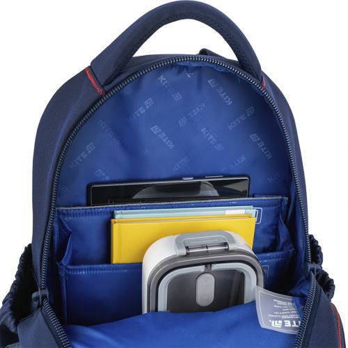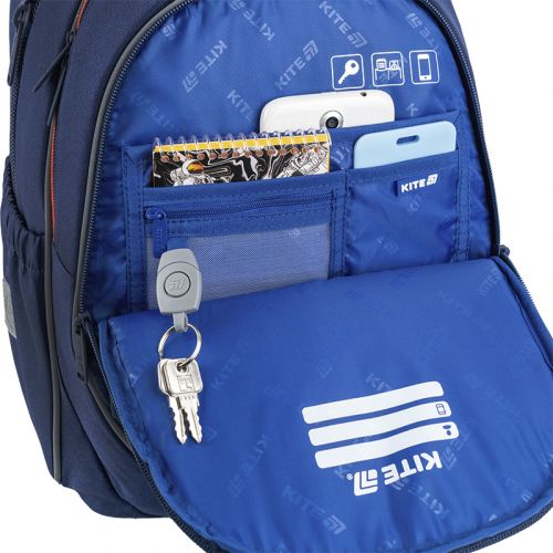 Рюкзак зовні: запатентована ортопедична спинка Ergo Kids; широкі S-подібні лямки; 2 відділення; 1 об’ємна передня кишеня; 2 бічні кишені; світловідбивні елементи; м’яка ущільнена ручка та текстильна петля; знімний нагрудний ремінь; ущільнене дно з захисним покриттям; зносостійкі блискавки, надійна фурнітура; знімний гаманець на карабіні. Рюкзак всередині: роздільники з фіксуючою резинкою; кишені для планшета та телефона з плюшевою підкладкою; органайзер; знімна ключниця; брендована підкладка; поле для персональних даних; навігаційні значки. Декор: гумовий друк, гумовий бейдж, брелок-підвіска з тасьми