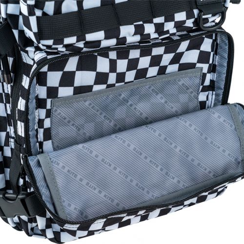 Рюкзак Kite 2593L виготовлений з міцного поліестеру. Трендова супер-містка модель, рекомендована для підлітків від 13 років та дорослих, на зріст від 145 см. Рюкзак зовні: ущільнена спинка з дихаючою сіткою; анатомічні S-подібні лямки; знімний нагрудний ремінь; 2 об’ємні фронтальні кишені на блискавках; 2 бічні кишені – для пляшечки з водою або термоса; містка кишеня, прихована в спинці; текстильна ручка-переноска; посилене стійке дно; високоякісна фурнітура; обсяг рюкзака легко регулюється за допомогою бічних фастексів; кріплення для фіксації рюкзака на валізі, шнурок для телефона – у подарунок. Рюкзак всередині: 2 ємні відділення; 4 внутрішні кишені; відділення для ноутбука та кишеня для планшета з флісовою підкладкою; міцна брендована підкладка; іконки внутрішньої навігації.