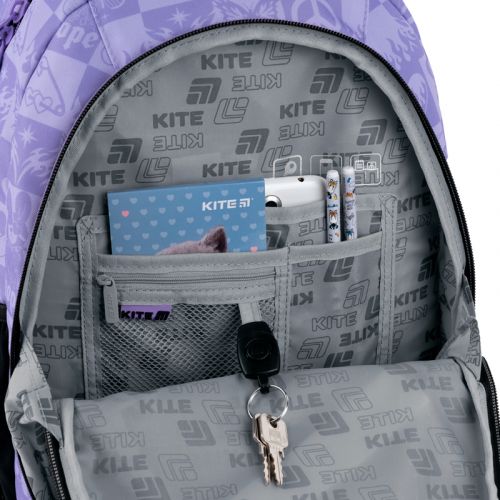 Рюкзак зовні: ортопедична спинка Ergo Teens; широкі S-подібні лямки; 2 відділення; 1 передня та 2 бічні кишені; м’яка ущільнена ручка; текстильна петля; знімний нагрудний ремінь; світловідбивні елементи; підвіска; зносостійкі блискавки; надійна фурнітура; шнурок для мобільного телефону в подарунок. Рюкзак всередині: роздільники з фіксуючою резинкою; кишеня для планшета з плюшевою підкладкою; кишеня для телефону з плюшевою підкладкою; органайзер; знімна ключниця; брендована підкладка; навігаційні значки. Декор: сублімаційний друк, гумовий брелок-підвіска.