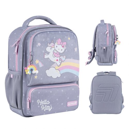 Рюкзак зовні: ущільнена спинка; 1 відділення; 2 передні та 2 бічні кишені; м’яка ущільнена ручка; світловідбивні елементи; нагрудний ремінь; зносостійкі блискавки, надійна фурнітура. Рюкзак всередині: поле для персональних даних. Декор: плюшева кишеня, об’ємний друк, декоративний брелок-підвіска з металевим карабіном