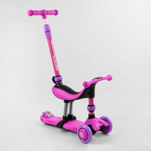Функціональний триколісний самокат Best Scooter з сидінням і батьківською ручкою та амортизаторами.