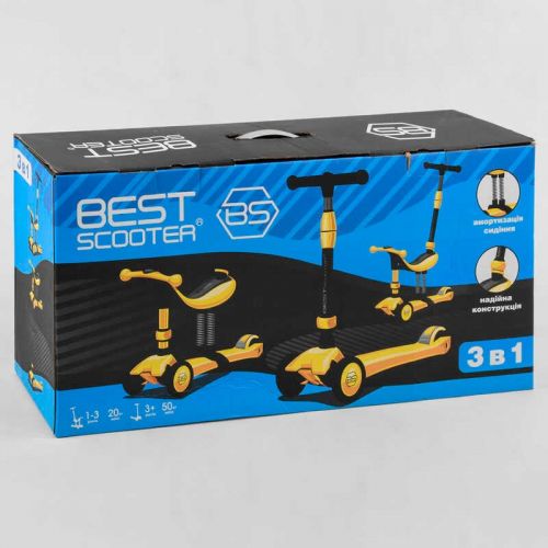 Функціональний триколісний самокат Best Scooter з сидінням і батьківською ручкою та амортизаторами.