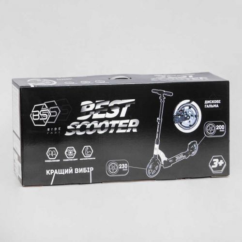Самокат двоколісний “Best Scooter” (ФАРА, переднє колесо PU 230 мм, заднє колесо 200мм, 2 амортизатори, дискове гальмо, затискач керма)